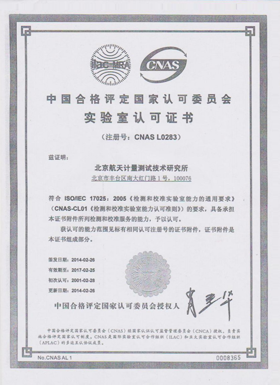 中国合格评定国家认可委员会实验室认可证书